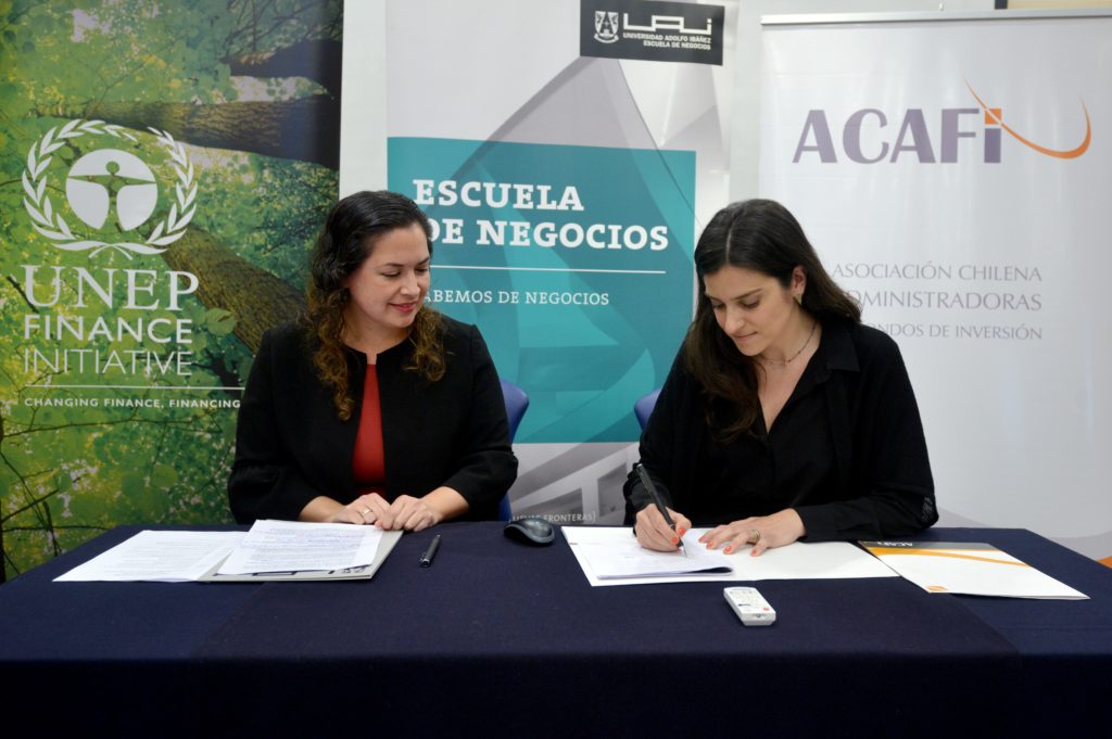 Con el objetivo de continuar impulsando las inversiones de impacto en Chile y ampliar la base económica del país, la Asociación Chilena de Administradoras de Fondos de Inversión (ACAFI) firmó un acuerdo con ONU Ambiente Iniciativa Financiera (UNEP FI), mediante el cual se convierte en el primer gremio financiero “Supporting Institution” de UNEP FI en Chile, con el fin de trabajar conjuntamente para avanzar en el desarrollo de la agenda de las finanzas sostenibles en el país.